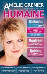 March 2011, Amélie Grenier's long awaited "1 woman show" Humanie (directed by Alex Veilleux) premières in Gatineau, Qc to a sold out house at the Salle Jean Despréz. The crowd was INSANE!!! A huge success! The show will play Montréal and Québec City in April.