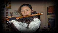 Tsou playing one of her many Chinese flutes.